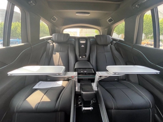这台迈巴赫GLS600的重点在于后排。不同于普通GLS采用7座布局,这台迈巴赫GLS600是4座,取消了第三排座椅,后排两个独立座椅通过中央地台隔开,座椅的倾斜角最大可达43.5°,基本是半躺着了,最大限度延伸了腿部空间。全车配置了主动式多仿型座椅,这是奔驰针对豪华高性能顶配车型所配备的一项科技与豪华为一体的舒适安全性配置。座椅带有单独控制可充气的气腔,具有活力按摩功能以及动态驾驶支撑,确保最佳舒适性跟出色的支撑性。后排带有全景天窗、独立的多媒体娱乐系统、独立分区空调,车内香氛装置,可选车载冰箱、后排小桌板。整车都是夹层玻璃,搭配整车降噪组件隔音非常好,车内带64色氛围灯,26喇叭的柏林之声音响系统。