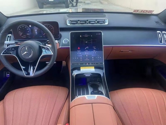 22款奔驰s450升级版中控台采用大量高品质实木面板精巧的中央送风口和指针式时钟完美镶嵌,其中内饰中最大面积的电子装备就是12.3英寸的两块高分辨率屏幕了。车内实木与真皮相间包裹所带来的视觉效果和手感都饱满坚挺。方向盘和中控台等处用桃木色加以装饰,透露出浓重的商业气氛。