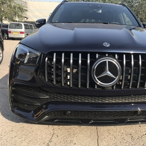 摄图:为本公司现车实拍图片(未经允许,切勿转载)2021款奔驰AMGGLE53(配置|询价)采用AMG垂瀑式赛车格栅,强有力的运动感和难以掩饰的霸气而令人着迷。得益于带有15根镀铬竖条的AMG垂瀑式赛车格栅,AMGGLE 53 4MATIC 呈现强烈的视觉冲击力,更彰显了纯正的AMG基因。双L型日间行车灯我们在GLE AMG车型上第一次看到,日行灯两条线把大灯组分割成两个区域。下方设计了贯穿式的进气口,内部采用了熏黑中网,和横置的饰条进行装饰,不仅增加了运动气息,更提升了前脸的层次感。张经理17695561666微信同号