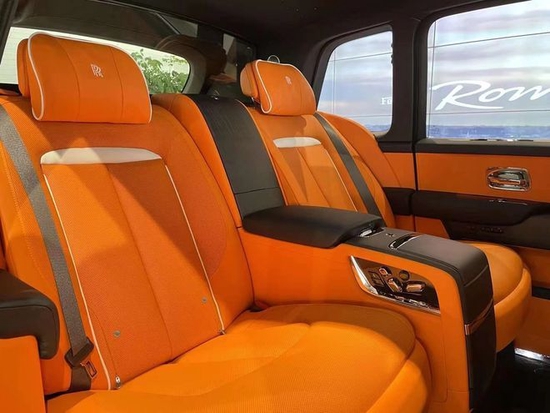 劳斯莱斯库里南座椅设计大胆又充满自信,彰显劳斯莱斯汽车的品质与工艺。座椅采用简洁而现代的马蹄铁图案,强调座椅的支撑力。整体椅背由一整张皮料精心塑形,打造出极为立体的表面。后排两个独立座椅之间设有后排中央固定扶手,可容纳带有劳斯莱斯威士忌酒具的酒柜、香槟酒具和冷藏箱,为后排乘客带来旅途中的终极享受。