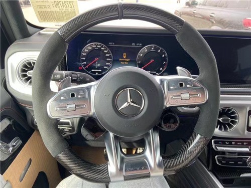 奔驰G63采用了全新的内饰设计,贯穿式中控将液晶仪表盘和中控显示屏合二为一,科技感更强,还能够联动操作,显示更多的车辆信息。这台车并没有选装碳纤维中控饰板,红色菱形格座椅,而是选择了与外观橄榄绿十分搭配的棕黑双拼颜色、带给人很强的驾驶欲望。