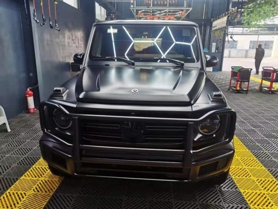 21款奔驰G550是一部纯粹的全地形越野车,粗犷的外观,标志性的三肋镀铬格栅,大大的奔驰车标非常醒目,硬朗笔直的车身线条完全是硬派越野的风格,车头圆形前大灯设计很复古,平直的线条贯穿全身。