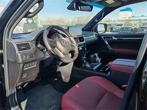 全新雷克萨斯GX460的LED大灯日行灯4.2彩色仪表信息显示前排座椅通风加热七座非承载式车身6挡手自一体18寸轮12气囊空气悬挂底盘升降动态调节悬挂系统(KDSS)中央差速锁天窗大灯清洗打孔皮革座椅电动座椅主驾带记忆智能钥匙三区自动空调8寸屏导航蓝牙倒影电动真皮多功能方向盘定速巡航桃木内饰胎压监测电动调节外后视镜(电动折叠记忆功能可加热LED转向灯倒车自动角度调节)。
