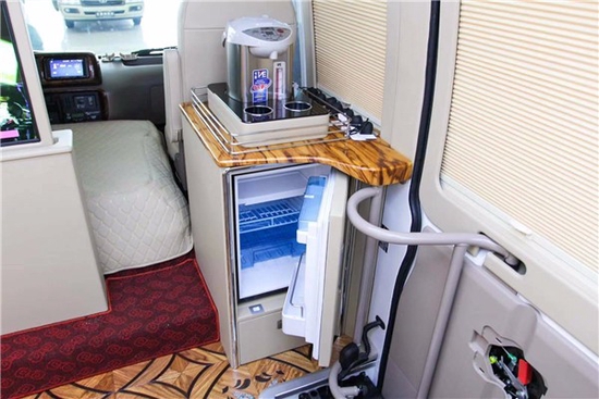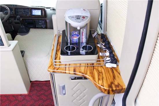 【丰田考斯特】丰田柯斯达4.0l(出厂合格证9座/10座/11座/12座/13座/15座/16座/17座/18座/19座/20座/23座)车内还配备了空气净化器,让您可以在密封的车内也可以呼吸到新鲜的空气,还有吸顶式电视、豪华双人航空座椅、秘书桌、车载冰箱、高铁式窗帘、进口阻燃地毯等等。设计中的每一个细节中都体现出了造型与功能的完美结合了。