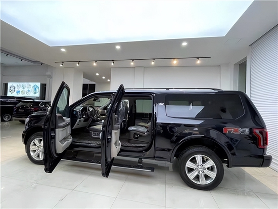 随着时代的发展,奔驰商务车已经满足不了有些家庭了,很多客户对车辆的动力要求都是比较的高,那么今天给大家介绍这款福特F150 (配置|询价)勇猛者平顶7座豪华商务车,无强制报废年限可以进市区,3.5V6发动机,381p马力,接下来给大家一一介绍。