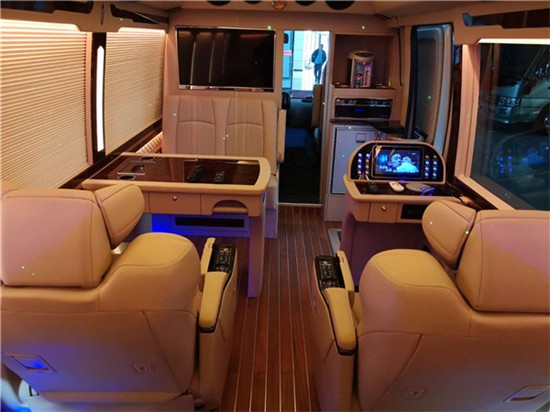 丰田考斯特改装商务车内饰的改装上,有许多不同的细节的设计。对于旅行来说,乘车过程中难免会有许多烦闷之时,所以乘车过程中的娱乐活动可以帮助我们很好的打发时间,有一个愉悦的体验。,考斯特改装外观方面采用中空隔热隐私玻璃,镀铬、镀金标志,车身彩条庄重感与豪华感油然而生。