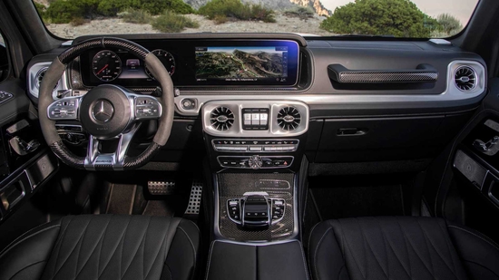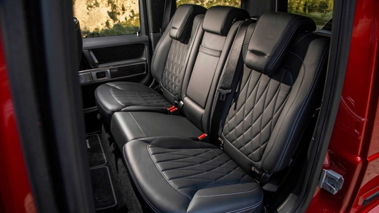21款奔驰G63豪华精致的真皮包覆提供了足够的舒适性和支撑性,通风和加热功能让乘客免受高温和寒冷的煎熬。中控台多处均采用碳纤维材料覆盖,带彩色TFT显示屏的AMG仪表盘、AMG主菜单和单独的挡位显示器以及采用白色照明的AMG门槛。名贵的选材及精湛的内装令人拍案叫绝。