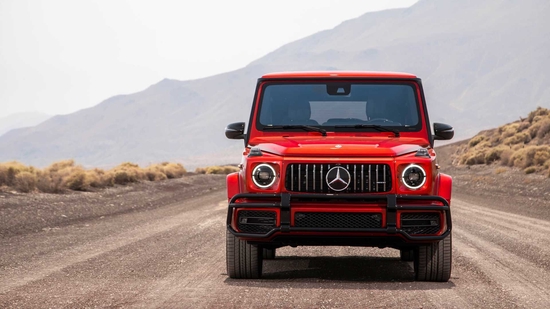 21款奔驰G63现车它硬朗的方盒子造型,没有多余的弧度、没有任何曲线,眼光所及满是直锋利的线条,就连车顶上的导雨沟槽,也是沿着车顶周围一圈,分外焊接上去的金属槽,车门搭钮更是绝不虚心,硬挺挺地屹立在门缝之外,外凸的轮拱、造型如同 梯形的引擎盖。