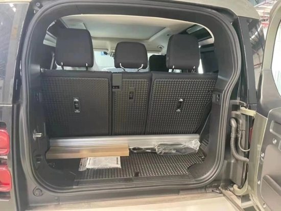 21款路虎卫士 (配置|询价)90两门版车头的进气格栅则使用了比较冲突的银色作为搭配,硕大的尾箱让这个黑色的“大块头”看上去十分威武。圆润精致的前脸造型、较为缓和的车顶弧线则透露出时尚气息。 镂空式的前进气格栅也是现在路虎车型所采用的设计元素