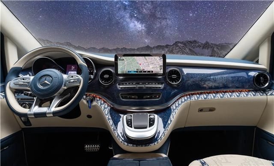 正副驾驶座椅可8向电动调节,并且通风加热记忆等功能一应俱全。双拼色真皮包覆的多功能方向盘,奔驰V级家族式的中控系统,黑化的涡轮式出风口以及星空系列的中控饰板把驾驶舱打造的完美无缺。
