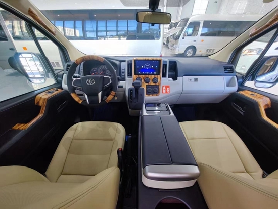 进口丰田海狮现车到店,改装9座真皮航空座椅,出游畅行舒适尽享,性能动力配置丰富,优惠袭来北京爆卖。丰田海狮作为一款豪华的商务面包车,集商务接待以及移动房车为一体,在现在的商务接待以及政府接待的市场上都深受欢迎,丰田海狮改装商务车也改装的神奇技能成为商务用车的佼佼者。
