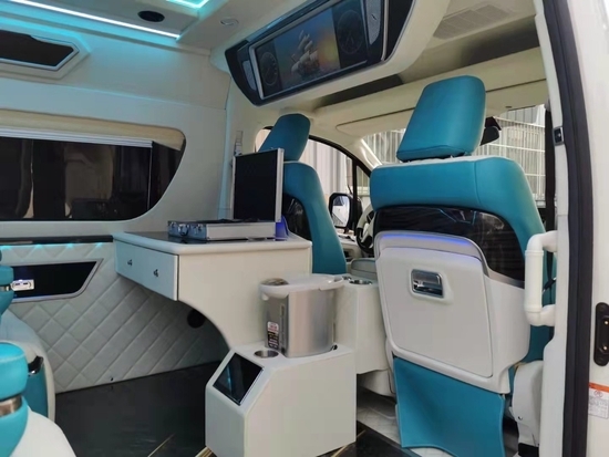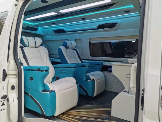 2022款丰田(进口)海狮-HIACE9座商务车采用2+2+2+3四排九座的设计,第二排和第三排均配备了两个Ottoman航空座椅,比埃尔法要两张,第四排排放一张三人座的沙发床,即宽敞又实用,在空间运用上非常可以。