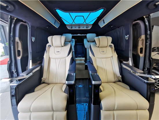 奔驰V260 (配置|询价)L改装高顶7座 大空间大格局。这款国内顶配定制改装的奔驰V260L巴塞罗那版,外观顺畅的车身流线搭配高顶设计,摆脱了传统商务车的笨拙,使奔驰V260L看起来十分的稳重大气,内饰通过改装实现了满足商务接待、洽谈、出游等各种出行需求。