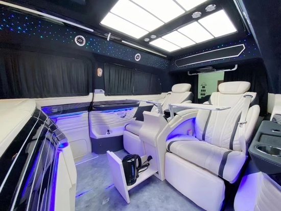 奔驰V260 改装高顶钻座椅人体工程学设计,带有一键式展开及记忆功能,并配备加热、通风、气动、一键式伸缩腿托功能,带来头等舱级舒适体验巧夺空间,客厅级后舱体验,隐藏式空间优化独立座椅,二排座椅可在吧台与独立座椅间一键切换,充分释放后舱空间,带来客厅级舒适享受。
