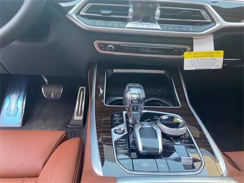 宝马X7空调出风口与温度显示屏、实体功能按键结合在同一区域,并使用银色装饰条进行点缀。下方盖板下方为带有加热、制冷功能的杯架,进一步提升了车内的豪华氛围。 宝马X7结合双12.3寸显示屏,X7搭载了最新的iDrive7.0多媒体系统,并且拥有20G的硬盘空间可用。