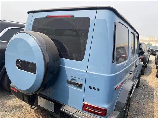21款奔驰G63 (配置|询价)硬朗的方盒子造型,没有多余的弧度、没有任何曲线,眼光所及满是直锋利的线条,就连车顶上的导雨沟槽,也是沿着车顶周围一圈,分外焊接上去的金属槽,车门搭钮更是绝不虚心,硬挺挺地屹立在门缝之外,外凸的轮拱、造型如同 梯形的引擎盖。
