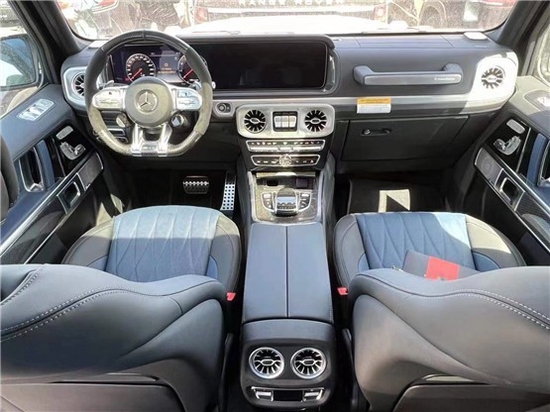21款奔驰G63豪华精致的真皮包覆提供了足够的舒适性和支撑性,通风和加热功能让乘客免受高温和寒冷的煎熬。中控台多处均采用碳纤维材料覆盖,带彩色TFT显示屏的AMG仪表盘、AMG主菜单和单独的挡位显示器以及采用白色照明的AMG门槛。名贵的选材及精湛的内装令人拍案叫绝。