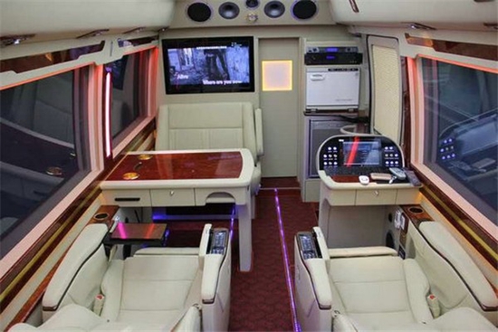 对于座椅的选择,我们可以根据自己的需要进行选择,豪华的真皮座椅或者舒适的全进口埃尔法 (配置|询价)座椅,另外增加办公桌冰箱等。我们可以在冰箱中放置老人需要携带的药品或食物,给他们的旅行带来更多的舒心享受。座椅的设计是丰田考斯特改装商务车最主要的一个部分,其他的设计也有着与众不同处。