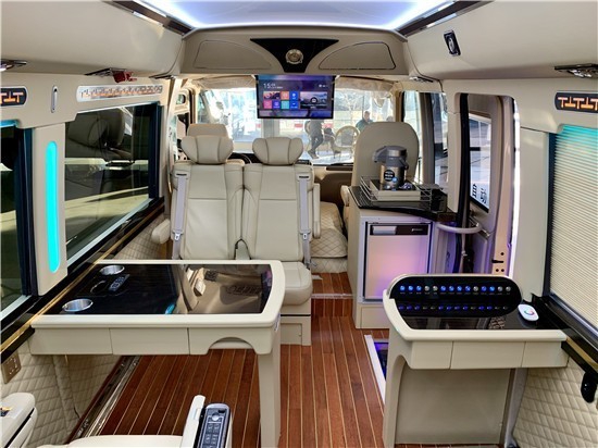 再者。我们从商务车的办公性能上进行改装来说。商务车与其他车型不同之处就在于它是作为一种商务性质的座驾来使用,出席商务活动或者接待商务往来人员是其能发挥的最主要的作用,所以实用性是我们必须考虑的一个问题。商务车在另一种层面上相当于一个移动的办公室,物尽其美物尽其用使我们的追求,丰田考斯特改装,我们可以根据自己的需要增加豪华办公桌,固定的秘书办公桌。以及电脑手机电源接口等,在体现其美观实用作用的同时,又能体现尊贵的姿态。
