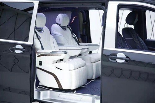 以下是贵宾舱二个总裁 (配置|询价)座椅,这二个座椅具有记忆功能,联系电话:18812637416刘经理 (同号微信)何为记忆功能呢?就是一键展开及一键收回,这个座椅是根据人体工程学设计而成,能一键式找到您身体最舒适的角度。在总裁座椅双侧有两个隐藏式桌板。总裁座椅中间有个热感电子触摸屏幕可控制后舱设备,屏幕下方有个“语音控制系统”也可控制整个贵宾舱的设备