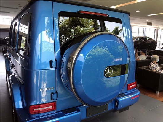 新车的尾部采用了非常方正的轮廓设计,蓝色的小书包的外圈采用了银色的涂装,它的底部包围也采用了蓝色的风格,整体看起来和奔驰G500特别版车型没有什么大的区别。在蓝色奔驰G350车型的旁边的黑色奔驰G级也是一款G350版本的车型,它的外观细节和蓝色车型不同,它的备胎上采用了银色的涂装,车轮毂也采用了银色设计!
