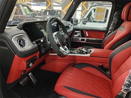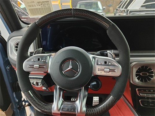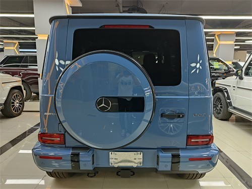 图片中的G63单选瓷器蓝外观颜色,整车单选配置:暗夜包:黑曜石黑前大灯 前转向灯 后尾灯 防撞杠 前护板 侧后视镜 备用轮胎圈 格栅青铜灰色 前保护罩黑色 座椅舒适包:主动式多轮廓前按摩座椅 前座椅快速加热 前座椅通风 独家内饰包:座椅 门板纳帕皮菱形格座椅配钻石缝线 仪表板上下真皮包裹对比色缝线 主动式多轮廓前按摩座椅 前座椅快速加热 前座椅通风 纳帕皮包边丝绒 地毯脚垫 行李箱垫子 AMG 碳纤维方向盘 AMG GT方向盘按钮22轮AMG 碳纤维内饰。