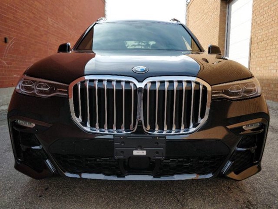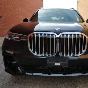 22款宝马X7 (配置|询价)前脸配备家族最经典的双肾式格栅设计,尺寸变得十分夸张,激光大灯和天使眼LED日间行车所构成的头灯组,造型细长,线条也格外凌厉。