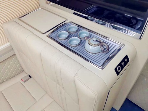 丰田考斯特华通丰业最能够打动人心的就在于内饰的设计上,内饰的设计为我们营造了一个舒适的乘车环境。内饰座椅的选择上有不同的方式,华通丰业原装进口的埃尔法 (配置|询价)座椅,更是增加了舒适的通风加热以及自动脚托等装置,座椅还可以选择豪华航空座椅以及可旋转的首长席座椅。华通丰业在乘驾舒适感的第一要素上绝对是做到了贴心。