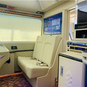 丰田考斯特改装商务车不仅仅可以改装成商务用车,同样也可以打造出我们专属的移动房车。,丰田考斯特当然考虑到大家在日常生活中的基本需要。人的一生所追求的也就衣食住行而已,丰田考斯特改装商务车在这一点上可以满足大家所有的需求。丰田考斯特内饰中还可以有餐具厨房,简单大方的设计,高贵优雅的空间,在那样一个7米长的车内,却显示出了与众不同的的风味。洗手间或者置物柜,丰田考斯特改装商务车在内饰的设计上,为我们营造了加的温馨。