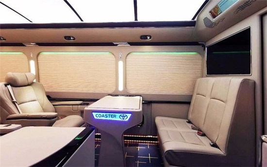 丰田考斯特虽然是被称为中巴车但是在内饰的设计上却展现出无与伦比的美丽,内饰的灯光设计营造出或者温馨或者宁静的氛围,彩色的航空顶灯展示出一种独特以及改装设计的神奇,LED大灯可以满足我们办公或者阅读的需要,舒适的设计的灯光设计让我们看到了丰田考斯特改装商务车的神奇之处。