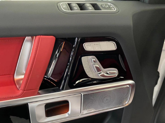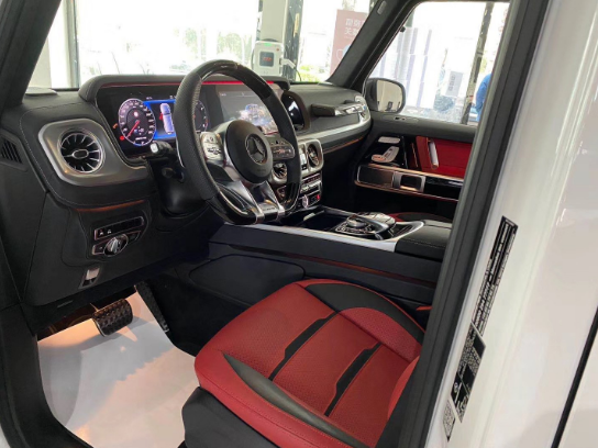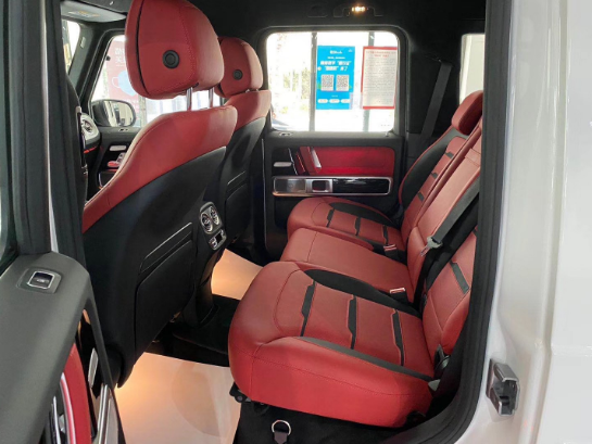 20款奔驰G63AMG车内用料以真皮为主,部分碳纤维及铝合金装饰件。如今的G级是纯粹的豪华车了,跟那些纯粹越野车不一样的,车内配置很高,像这个座椅除了各种电动调 节功能外,还带有腰托、腿托以及加热、通风、记忆功能。座椅还是很厚实,都是真皮材质,有菱格纹的走线,红黑配色的座椅也是这台Edtion版的 特色所在。