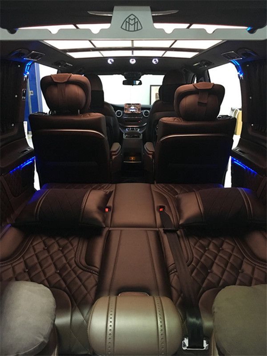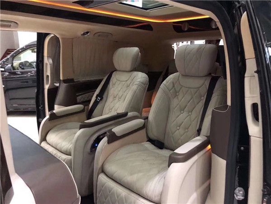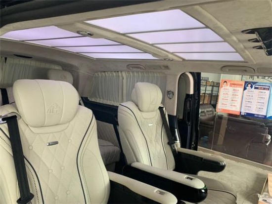 进口奔驰V260L改装VS980的顶灯的设计采用了来自62S光纤顶灯的设计,在光纤顶灯的照耀下,不仅仅能够保证车内的照明需求,可选配七彩变色灯,带来视觉冲击感,内饰也显得贵气十足。进口奔驰V250改装高顶隔断版VS680贵宾舱上部,光纤顶灯搭配意大利进口ALCANTARA麂绒皮包覆,既为乘客带了贴心享受,又为进口奔驰V250改装高顶隔断版VS680带来更奢侈的贵宾感。