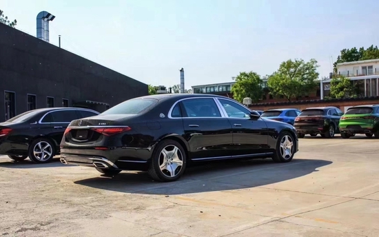 2022款奔驰迈巴赫S480侧面部分是优雅修长的造型,车头要比尾部长很多,形成了一种拉伸的效果,通过银色饰条包边的车长和门板加持,营造出了非常商务豪华的气质,C柱部分配备的双M LOGO,则彰显了该车迈巴赫的身段。