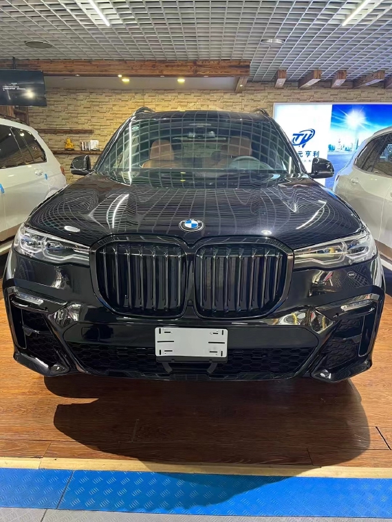 21款宝马X7 (配置|询价)双肾式大尺寸前进气格栅,大灯的外部造型上面是更加的扁平化,内部的天使眼的大灯设计在设计上面是更加的抽象化和科技感,下方的保险杠以及整体的氛围营造也是在向着沉稳的方向过度的。