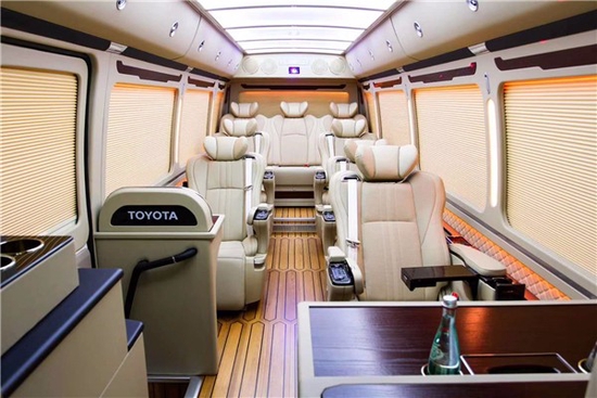 丰田考斯特商务车改装销售注重实用性的设计,作为一款商务车,我们在内饰上追求舒适和便捷。高档的办公桌,技能显示尊贵的身份提升商务车的档次,更能让我们在旅途中又舒适的办公环境。真皮航空座椅,360度可旋转的首长席,方便您在旅途过程的临时会议,对于乘车人员,我们提供舒宽敞的乘车环境,座椅舒适柔软,更可以增加可以自动加热,调控角度的装饰,为您减轻旅途的疲劳之感。我们以最贴心的设置,满足您的旅途所需。