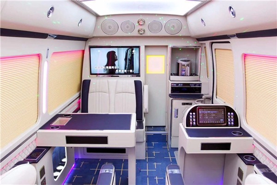 丰田考斯特改装设计了舒适的座椅,自然需要用高档的办公桌加以衬托,车内的文件柜,车载冰箱,置物盒的改装,华通丰业丰田考斯特改装商务车在内饰的设计上打造了自己专属的风格,而这些也恰恰是丰田考斯特改装商务车能够立足于商务车的市场主要原因。