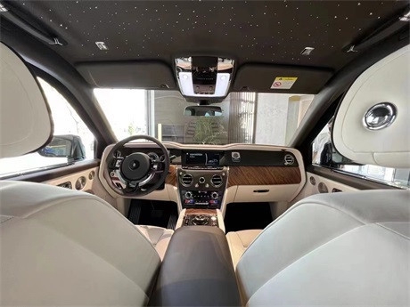 劳斯莱斯库里南遵循了劳斯莱斯一贯的设计风格,造型经典复古但不失科技感,大量实木饰板的采用,提升了内饰的档次感。而大面积真皮包裹的设计,则成功的营造出奢华舒适的内饰氛围。仪表盘的设计较为古朴,内部指针清晰可见,外圈还配备有劳斯莱斯珠宝般的装饰环。方向盘沿用了经典的三辐式造型,但是整体设计更加小巧、厚实,并且内部包裹有可加热的柔软材质。