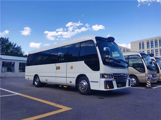 近日在华通丰业店内获悉:作为最新款式,丰田 在对考斯特 (配置|询价)中巴车进行了一番小整容。前脸设计经过调整,哑光的水箱面罩更具立体感,与日本本土全新GIGA 旗舰 重卡风格遥相呼应。
