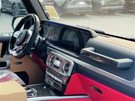2021款奔驰G63AMG豪华精致的真皮包覆提供了足够的舒适性和支撑性,通风和加热功能让乘客免受高温和寒冷的煎熬。中控台多处均采用碳纤维材料覆盖,带彩色TFT显示屏的AMG仪表盘、AMG主菜单和单独的挡位显示器以及采用白色照明的AMG门槛。名贵的选材及精湛的内装令人拍案叫绝。