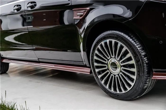 无论整体气质,还是细节做工,迈莎锐MV600赫迪都透射着埃尔法、LM等日系商务车无法比拟的品质感与艺术性。纵使车身整体依然维持低调内敛的曜石黑钢琴烤漆配色,但新增的红线碳纤维车身组件却将其由内而外散发的高雅属性毫无保留地展现出来。静谧雅致的氛围让这台特殊商务车看起来像极了不苟言笑的英伦绅士,充分佐证了创始人Kourosh Mansory先生对英伦汽车文化的诚挚热爱。