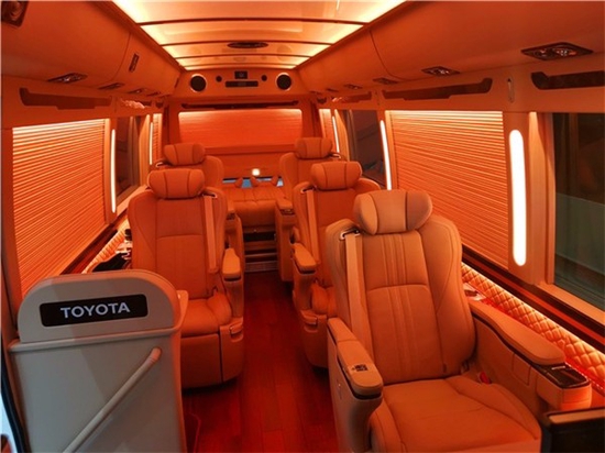 丰田考斯特豪华改装实拍效果丰田考斯特 改装商务车在内饰的设计上是极其贴心的,车载冰箱的设计贴心备至,高档的办公桌设计方便我们在商务办公中的需要。而车顶的 LED 大灯设计更是可以满足我们照明的需要。华通丰业丰田考斯特 车内航空顶灯以及车内驾驶席的半桃木装饰,这些设计在效果的展示上提升了丰田考斯特改装商务车的档次。