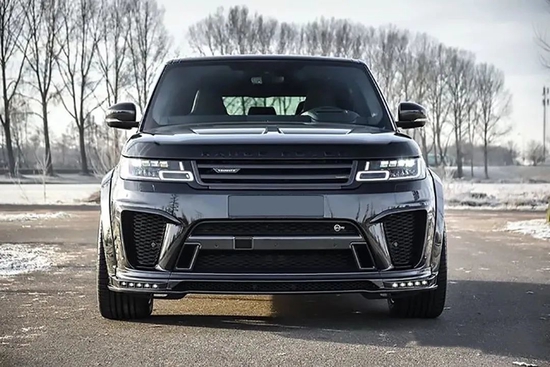 MANSORY迈莎锐揽胜SVR前脸经过了重新设计,给人带来更加孔武有力直观感受:波浪形进气格栅改成了更为简约利落的双横贯条幅式;带有大尺寸冷却进风口的宽体包围与霸气的LED日间行车灯上下呼应,结合“碳化”的前唇、前保险杠、雾灯罩等部位,一派前所未有的立体层次感和精奢贵族气跃然于表,使观者倍感震撼欣喜;全碳引擎机盖更是威风凛凛夺目吸睛,由于碳纤维极强的高温耐受力,即便驾驭良久,引擎盖依旧能保持温热不烫手。