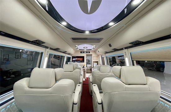 ● 整车缅甸花梨木设计、手工打造立柱花纹.整车航空氛围灯:黄灯、蓝灯、柜灯、窗帘灯、立柱灯、地廊灯、影音麦克12英寸点歌台