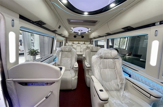 车内的装饰设计上来说,更能体现出尊贵与豪华舒适的特点,11座丰田考斯特采用的是后排三座,宽敞而又舒适,豪华首长座椅以及商务办公桌,让您的旅途不会因商务的安排而疲劳。我们追求得是为您带来更多的舒适之感,我们可以为您提供高短的私人订制,您可以根据自己的需求定制专属您的舒适座驾,丰田考斯特改装商务车以专业的技术满足您对豪华版商务车的所有需求。