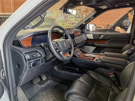 21款林肯领航员内饰非常奢华,多功能方向盘,中控台的造型与宽大的车身相呼应,新车全部真皮包裹座椅,内饰采用桃木搭配设计,高贵典雅,加高加大的车身除了增加内部空间外,还给人营造一种尊贵典雅的感觉。最新林肯领航员新车采用了2+2+3的座椅布局,第二排采用了两个独立座椅,座椅内侧均配有扶手,舒适度超强。