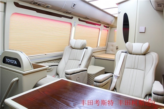 丰田考斯特改装商务车的内饰改装特点远远不止这一点,从地毯到窗帘,从车载冰箱到高级的影音系统,丰田考斯特改装商务车一直都在内饰的设计上以及外观的该哦装上打造出最完美的中巴车。丰田考斯特改装,你所有的想象都能实现,你想象不到它也依然存在。丰田考斯特简单却不平凡的中巴车。