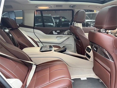 迈巴赫GLS600新车提供四座布局,四座车型第二排独立座椅相比普通版GLS更加靠后,并且带有巨大的腿拖,其后排座椅最大倾斜角度大43.5度,后排腿部空间最大达1.34米。中央由冰箱、控制台、储物空间和手机无线充电台等进行贯穿,呈现出类似于迈巴赫S级一样的头等舱设计。
