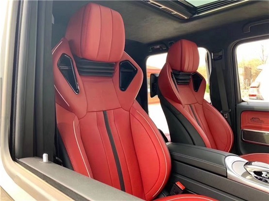 21款奔驰G63独特的外观造型设计更显霸气,经过重新设计的前进气格栅与两侧圆形大灯相互呼应,整个前脸的造型更为抢眼。中控台多处均采用碳纤维材料覆盖,带彩色TFT显示屏的AMG仪表盘、AMG主菜单和单独的挡位显示器以及采用白色照明的AMG门槛。