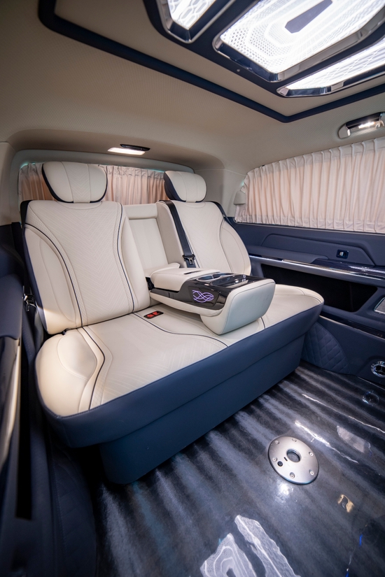 这款奔驰威霆7座商务车的车窗还特意设计隐私窗帘,给老板一个更安全私密的环境,后备厢空间也格外宽敞。