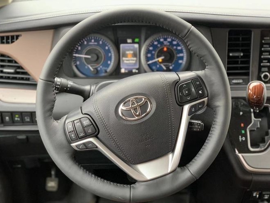 20款丰田塞纳四辐多功能真皮方向盘提升了精巧度的同时握感也舒适。方向盘上集成多种功能,操作便利减少对安全的影响并且带有语音控制。塞纳多功能按键集成了蓝牙电话,频道切换,音量控制等常用功能。方向盘左侧按键区域功能丰富,集成了外后视镜调节、ESP、并线辅助、前泊车雷达、大灯高度调节控制按键。